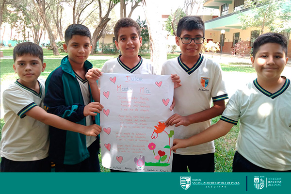 En el área de comunicación, los niños de sexto grado de primaria crearon poemas a María, en el marco de la celebración del mes mariano y el desarrollo de experiencias de aprendizaje acerca de las figuras literarias.