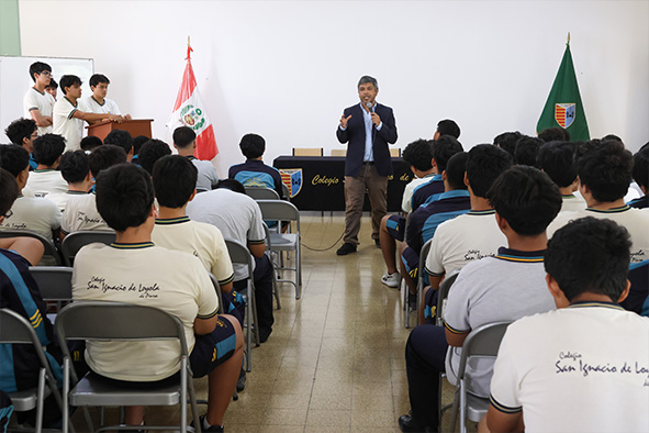 Durante su paso por nuestro colegio, compartió con estudiantes, docentes y colaboradores, animándonos a seguir fortaleciendo nuestra misión educativa desde la espiritualidad ignaciana.